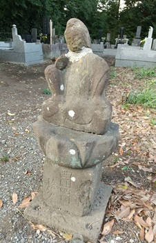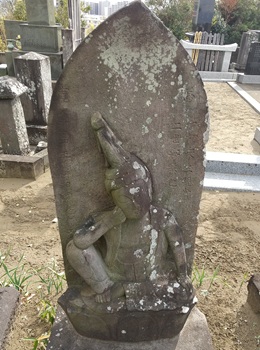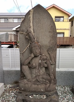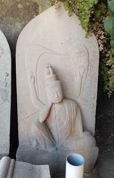 ここまで、藤沢市内の墓碑以外の如意輪観音塔13基をとりあげましたが、そのうち半分の6基が四臂あるいは六臂の多臂像で、その中で造立年がわかる4基はいずれも寛文、延宝年間と古いものです。一方墓碑に彫られた如意輪観音塔はほとんどが二臂ですが、ごく少数ながら多臂像も存在します。それが市内に何基あるかは不明ですが、おそらく10基程度でしょう。そのほとんどは17世紀後半に建立されたものであると予想します。